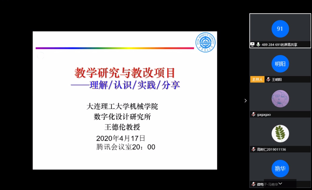 4月17日晚8点,第三十三期教学沙龙活动通过网络会议的方式如期举行。教师教学发展中心邀请了辽宁省教学名师,机械工程学院王德伦教授担任主讲人,围绕“教学研究与教学...
